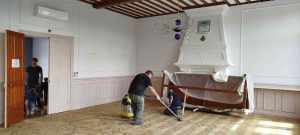 Les travaux de rénovation de la salle des mariages de Vitry-en-Artois touchent à leur fin, et le lieu emblématique commence d’ores et déjà à dévoiler tout son nouveau potentiel. Les dernières touches de peinture sont en train d’être appliquées, tandis que le parquet, désormais remis à nu, entre dans sa phase finale de vitrification.